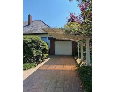 Im Vorgarten befindet sich eine Garage und ein Carport, so dass zwei Autos wetterfest abgestellt werden können. Parkplätze sind auch in den angrenzenden Straßen zu finden. Tor und Garagentor sind mit Funksteuerung zu bedienen. Die Einfahrt und Gehwege sind mit Granit ausgelegt.
