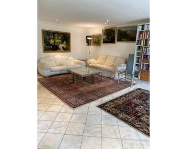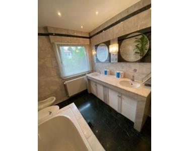 Keller: mit Fliesen. Eine Sauna, großer tagesbelichteter Hobbykeller mit Bar (ca. 40 m²), Heizungskeller, diverser Vorratskeller, Waschküche. Bad WC Dusche