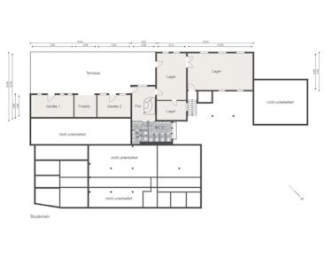 Die dadurch verschiedenen aneinander liegenden Häuser und Räumlichkeiten können hier vielseitig genutzt werden.