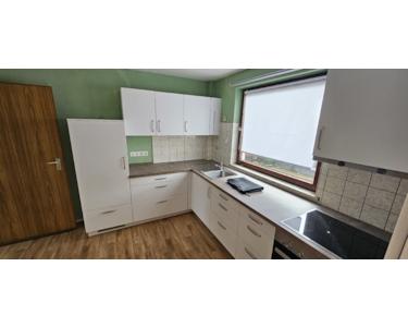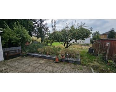 EG: Flur, separates WC, Bad mit Wanne, Küche mit EBK., Schlafzimmer, Wohnzimmer und Esszimmer mit Zugang zu Terrasse und Garten