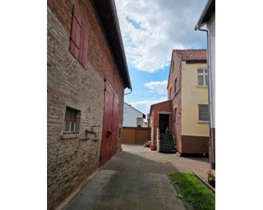 Zugehörig ist ein Fachwerkhaus mit integrierter Werkstatt und ein Lagergebäude, bestens nutzbar für Material, Fahrzeuge oder Vorräte, bei dem eine Kernsanierung noch nötig ist.