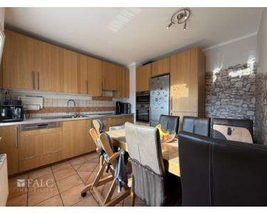 Die Küche ist funktional und mit modernen Geräten ausgestattet. Sie bietet ausreichend Platz für einen Esstisch, an dem die Familie gemeinsam speisen kann. Die Kombination aus Holz und modernen Elementen verleiht der Küche einen zeitlosen Charme.
