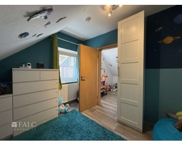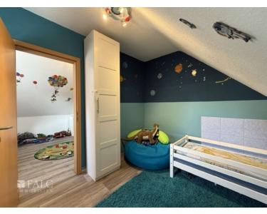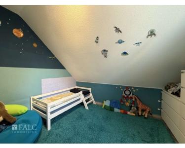 Im Obergeschoss befinden sich die Schlafräume. Das Hauptschlafzimmer ist geräumig und bietet genügend Platz für einen großen Kleiderschrank. Die weiteren Zimmer eignen sich hervorragend als Kinderzimmer oder Büro.