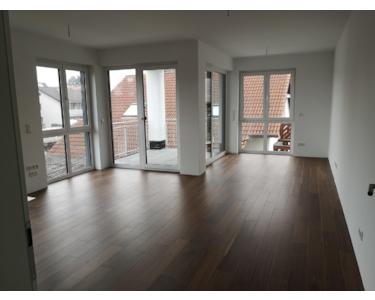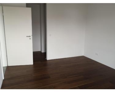 Hochwertige Ausstattung mit Nussbaum-Parkett, modernen Fliesen in Betonoptik und Einbauküche. Tageslichtbad und separates Gäste-WC. Aufgrund der Fensterfront auf der Rückseite ist die Wohnung sehr hell. An allen Fenstern elektrische Rollläden. Überdachte Loggia (ca. 6 m²). Angrenzend an das Schlafzimmer gibt es einen begehbaren Kleiderschrank mit integrierten, maßgefertigten Regalböden. Fußbodenheizung.