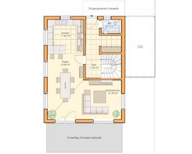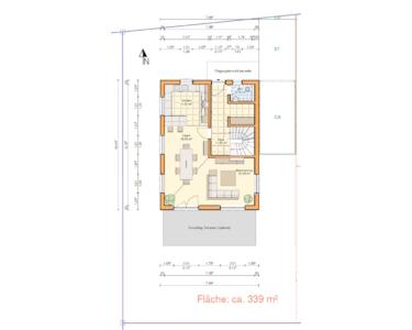 Hier wurde ein modernes Einfamilienhaus geplant und kalkuliert, welches jedoch selbstverständlich auf Ihre persönlichen Wünsche und Vorgaben angepasst wird. Damit Sie sich jedoch schon von den Möglichkeiten inspirieren lassen können, bieten wir Ihnen dieses Angebot mit einem Grundrissentwurf mit einer Größe von B: 7,948 m x L: 10,448 m, K + E + D, Kniestock 2,0 m und 22 Grad Dachneigung.