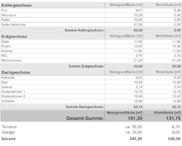 Für das Einfamilienhaus mit 339 m² Grundstück beträgt der kalkulierte Gesamtpreis € 975.000,00