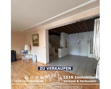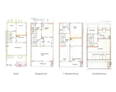 Im Erdgeschoss befinden sich ein einladender Flur, ein Gäste-WC, eine separate Küche sowie ein großzügiger Wohn- und Essbereich. Im Zuge einer Renovierung bietet sich die Möglichkeit, Küche und Wohnbereich durch einen Durchbruch zu einem offenen Raumkonzept zu verbinden – ideal für ein modernes Wohngefühl. Vom Wohnbereich aus gelangen Sie durch eine Doppelflügeltür direkt auf die große Terrasse und in den liebevoll eingewachsenen Garten. Sowohl das Kellergeschoss als auch das Obergeschoss sind über eine innenliegende Treppe bequem erreichbar.