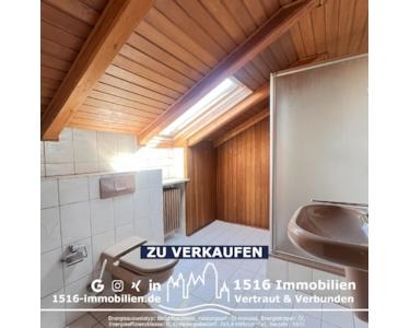Das ausgebaute Dachgeschoss verfügt über einen großzügigen Wohnraum sowie ein weiteres Badezimmer mit Dusche, Waschbecken und WC. Ein praktischer Abstellraum unter der Dachschräge ist über eine kleine Nebentür erreichbar.