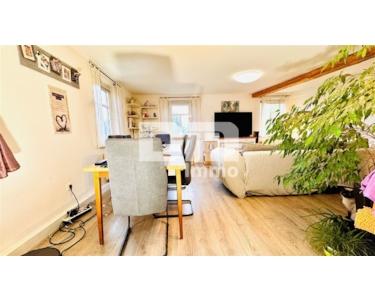 Highlight der ca. 83 m² großen WE4 ist das hervorragend geschnittene Wohn-/Esszimmer mit zweiseitigem Lichteinfall und stilvoll integrierter offener Balkenlage.