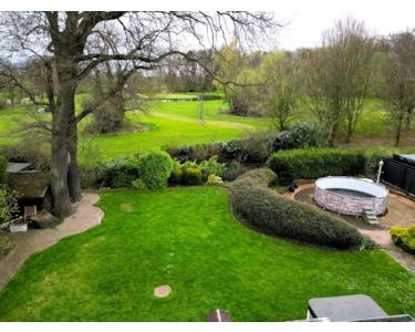 Die Immobilie liegt in einer ruhigen Wohnstraße direkt am Schloß Miel. Der Garten wird optisch durch den unmittelbar angrenzenden Golfplatz von Schloß Miel zur Parklandschaft erweitert.