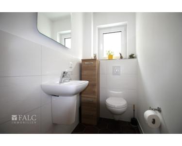Die Küche ist modern ausgestattet und bietet viel Stauraum sowie alle notwendigen Geräte für den täglichen Bedarf. Ein Gäste-WC im Erdgeschoss sorgt für zusätzlichen Komfort.