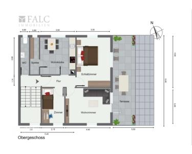Durchlaufen Sie das 1. Stockwerk nach Oben gelangen Sie in das 1. Obergeschoss des Einfamilienhauses. Hier erwartet sie eine Wohnküche, dass ebenfalls über einen Speiseraum verfügt, 2 Zimmer die als Schlafzimmer verwirklicht werden können und ein weiteres Zimmer, dass als Wohnzimmer gestaltet werden kann. Highlight im 1. Obergeschoss ist Ihre XXL-Terrasse, der Ihnen direkten Zugang vom Wohnzimmer aus bietet. Das WC befindet sich im Treppenhaus auf der Obergeschoss-Etage und kann sep. betreten werden. Dieser eignet sich praktischerweise als Gäste-WC.