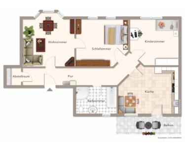 - 3-Raumwohnung mit 84,30 m² Wohnfläche