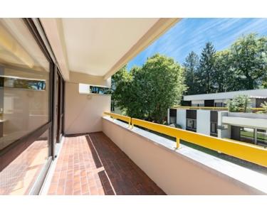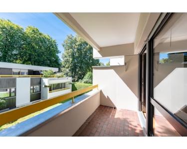 Das Wohnzimmer begeistert mit einer bodentiefen Fensterfront und Zugang zu einem überdachten Balkon, der nach Süden zum Garten ausgerichtet ist. Auch das große Schlafzimmer bietet diesen Vorzug: ebenfalls mit eigenem Balkon in Süd- und Gartenlage. Zwei weitere Zimmer mit nahezu identischer Größe, von welchen eines direkt an das Wohnzimmer angeschlossen ist, lassen sich flexibel als Kinder-, Gäste- oder Arbeitszimmer nutzen.