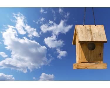 blauer Himmel und Vogelhaus