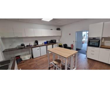 Büroräume in 1. Etage in einem modernen Neubau, mit Klimaanlage, Server + Verkabelung, mehrere Büros verschiedener Größe, ein Konferenzraum, große gut ausgestattete Küche für die Mittagspause. Eine teilmöblierte Vermietung ist nach Absprache möglich.