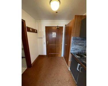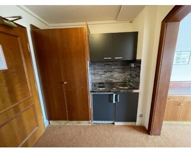 Beim Betreten der Wohnung befinden Sie sich im Flur, in dem eine Pantryküche integriert ist. Von diesem haben Sie Zugang zum Badezimmer mit Doppelwaschbecken und Badewanne sowie zum teilmöblierten, lichtdurchflutete Wohn- / Schlafzimmer.