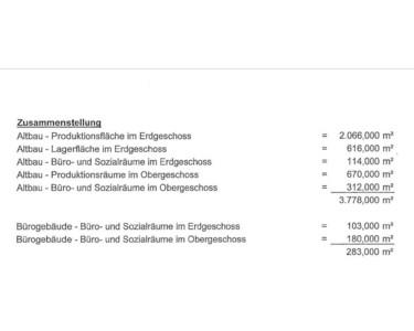 Mietpotenzial nach Renovierung: ca. 200.000 € p.a. (bei 4-5,00 €/m² Produktion & 5-6,00 €/m² Büro)