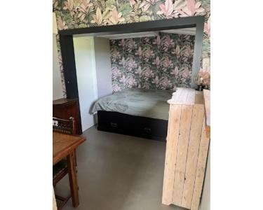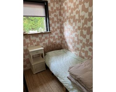 Ein gemütliches kleines Schlafzimmer, in dem ein Etagenbett bequem stehen kann. Und Innenschrank und Stauraum