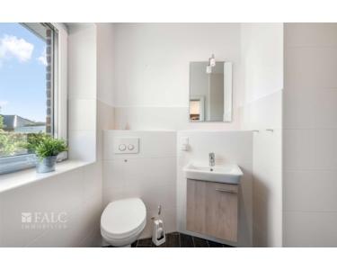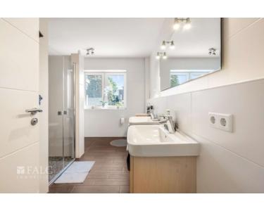 Das Badezimmer verfügt über eine Dusche sowie eine vorbereitete Anschlussmöglichkeit für eine Sauna oder Badewanne – ideal, um sich eine persönliche Wellness-Oase einzurichten. Ein separates Gästebad mit Dusche bietet zusätzlichen Komfort für Familie und Besucher.