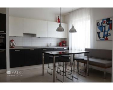 Die Küche ist mit Einbauschränken, einer Spülmaschine, einem Backofen und einem Herd ausgestattet und ist im Kaufpreis enthalten.
