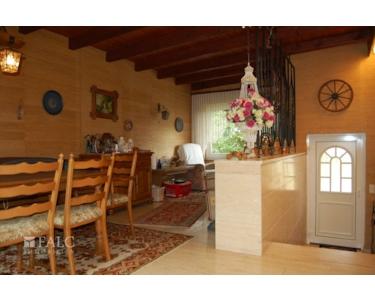 Das Erdgeschoss verfügt über zwei Zimmer, eine Küche mit Essbereich, ein Badezimmer mit Dusche, Wanne und Bidet und zwei separate WC´s, eine Vorratskammer und ein geräumiges Wohnzimmer mit Zugang zum herrlichen Wintergarten. Der geflieste Wintergarten ist mit einer elektrischen Markise ausgestattet, sodass Sie auch an sonnigen Tagen angenehmen Schatten genießen können. Von hier blicken Sie in den umzäunten Garten – ein idealer Ort, um Ihre persönlichen Gestaltungsideen zu verwirklichen. In dem großzügigen Garten befindet sich zudem ein Teich mit angelegtem Bachlauf und ein Gartenhaus.