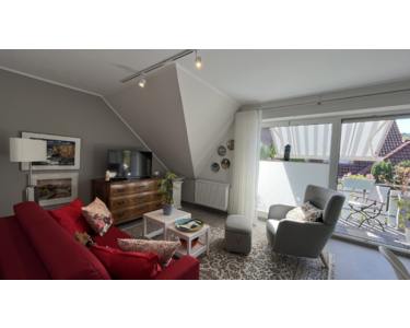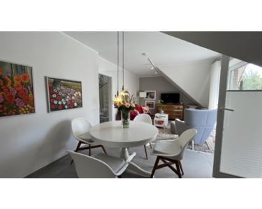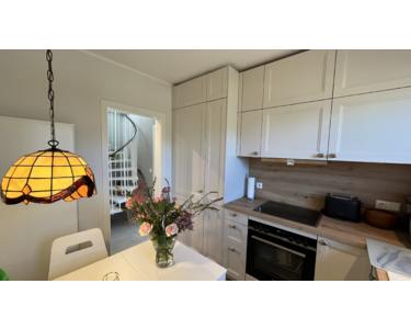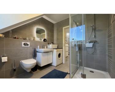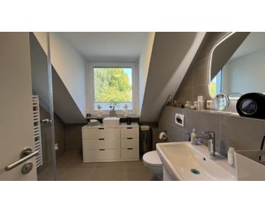Ihr neues, sonniges Zuhause umfasst eine Wohnfläche von ca. 70 m² und teilt sich wie folgt auf: Über den zentralen Flur gelangen Sie in das Badezimmer mit Fußbodenheizung und ebenerdiger Dusche, das Schlafzimmer, die Küche mit einer hochwertigen Einbauküche aus 2023/2024 und das Herzstück der tollen Wohnung - das lichtdurchflutete Wohn-Esszimmer mit Zugang zum 2018 sanierten Balkon mit neuer elektrischer Markise aus 2024. Hier lassen sich die sonnigen Tage und schönen Sommerabende bei einem Glas Wein genießen. 2024 wurde eine Klimaanlage mit Heizfunktion nachgerüstet. Der Spitzboden, welcher über eine geschwungene, weiß lackierte Wendeltreppe zu erreichen ist, wurde zusätzlich ausgebaut und umfasst eine zu Wohnzwecken ausgebaute Nutzfläche von ca. 15 m² und ist in 2 Schlafzimmern/Büros und einem Abstellraum unterteilt. Dieser Bereich wurde 2023/2024 vollständig renoviert und mit einem neuem Vinylboden ausgestattet. Das Veluxfenster wurde 2018 ausgetauscht. Alle restlichen Fenster in der Wohnung bis auf die Fensterfront zum Balkon wurden 2023/2024 erneuert. Die Sanierungsarbeiten umfassten weiter den Austausch aller Strom- und Rohrleitungen, die Renovierung der Wände, Austausch der Böden durch schöne Natursteinfliesen, den Einbau der neuen Küche im Landhausstil, Nachrüstung elektrischer Jalousien, Insektenschutzgitter, Austausch der Innentüren, Fenster (dreifach verglast) und Heizkörper.