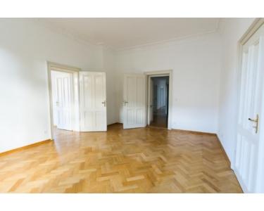 Die Räumlichkeiten zeichnen sich durch charakteristische, hohe Decken und teilweise original erhaltene Stuckdecken aus. Der hochwertige Parkettboden sorgt in allen Hauptbereichen für eine warme Atmosphäre und eine repräsentative Ästhetik.