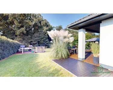 Die Immobilie überzeugt durch eine Vielzahl an Extras: ein Tunnelkamin sorgt für behagliche Wärme sowie elegante Optik, während eine 22 kWp Photovoltaikanlage einen nachhaltigen Energiebeitrag leistet. Eine moderne Einbauküche, eine Wasserenthärtungsanlage sowie elektrische Außenrollos ergänzen die hochwertige Ausstattung. Für zusätzlichen Komfort sorgt ein Whirlpool. Beheizt wird das Haus über eine energieeffiziente Weishaupt-Wärmepumpe mit Fußbodenheizung. Für Kinder steht ein schöner Spielplatz im Garten zur Verfügung.