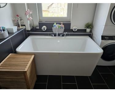 Wandlehnende Designer-Badewanne (Grohe Axor)