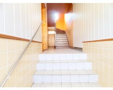 Steintreppe im Keller und Eingang gefliest, nach oben Holztreppe