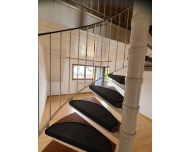 Gäste-WC und SZ, von dem Sie, wie auch vom WZ, Zugang zum Balkon haben. Mit einer edlen schön anzuschauenden Wendeltreppe aus massiver Stahlkonstruktion gelangen Sie ins das großzügige Maisonette-Zimmer. Die Keller, der Hausflur und die Wohnung wurden fachmännisch gestrichen.