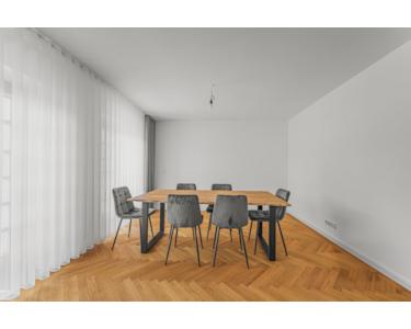 Die Wohnfläche beträgt ca. 180 m², aktuell verteilt auf zwei Wohneinheiten, jeweils mit eigener Küche. Dies ermöglicht flexible Nutzungsideen – Mehrgenerationen-Konstellationen, gemeinschaftliches Wohnen oder eine optionale Rückführung in eine großzügige Einheit. Die ursprüngliche Aufteilung kann bei Bedarf wiederhergestellt werden. Optional lässt sich ein Balkon in östlicher Ausrichtung erweitern.