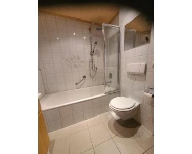- BAD: EG: 1 großes schönes hell gefliestes Bad mit 1 Waschbecken, 1 Badewanne mit Duschvorrichtung, 1 WC und Badmöbel, Ausstattung vom Eigentümer