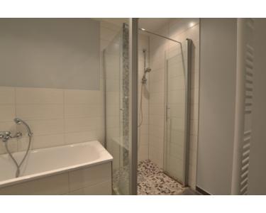 Die Bäder in den Wohnungen sind hochwertig gestaltet. Die Böden sind gefliest, Wände sind halbhoch gefliest. Große Spiegel und Handtuch-Heizkörper wurden installiert. Die Hauptbäder in den kleineren Wohnungen sind innenliegend, in den größeren Wohnungen haben die Bäder ein Fenster. Grundsätzlich verfügt jedes Badezimmer über eine Wanne und Dusche mit Echtglas- Duschabtrennung. Die größeren Wohnungen und auch die Maisonette-Einheiten sind zudem mit einem Gäste-WC ausgestattet. Waschmaschinenanschlüsse befinden sich entweder in den Bädern oder in der Abstellkammer/ Gäste-Bad.