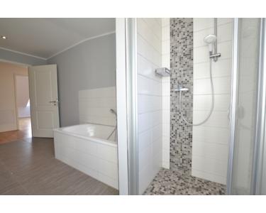 Die Bäder in den Wohnungen sind hochwertig gestaltet. Die Böden sind gefliest, Wände sind halbhoch gefliest. Große Spiegel und Handtuch-Heizkörper wurden installiert. Die Hauptbäder in den kleineren Wohnungen sind innenliegend, in den größeren Wohnungen haben die Bäder ein Fenster. Grundsätzlich verfügt jedes Badezimmer über eine Wanne und Dusche mit Echtglas- Duschabtrennung. Die größeren Wohnungen und auch die Maisonette-Einheiten sind zudem mit einem Gäste-WC ausgestattet. Waschmaschinenanschlüsse befinden sich entweder in den Bädern oder in der Abstellkammer/ Gäste-Bad.