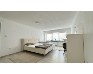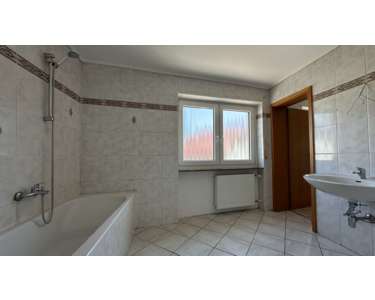 Die Wohnung im Obergeschoss bietet ca. 80 m² Wohnfläche mit einem großen, hellen Wohnzimmer, einem Schlafzimmer, einer separaten Küche sowie einem Tageslichtbad. Ein Balkon erweitert den Wohnraum ins Freie. Auch diese Wohnung ist leerstehend und kurzfristig bezugsfrei – ideal für Eigennutzung oder Neuvermietung.