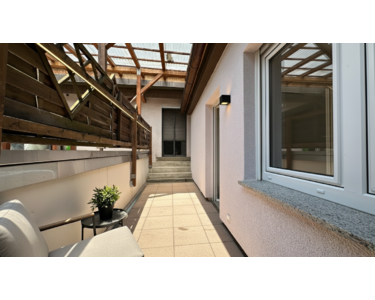 Im Erdgeschoss erwartet Sie eine großzügige, lichtdurchflutete Wohnung mit ca. 122 m² Wohnfläche und zusätzlichen ca. 27 m² Nutzfläche. Der offene Wohn-Essbereich mit moderner Einbauküche und direktem Zugang zur sonnigen Terrasse sowie zum Garten ist das Herzstück der Einheit. Zwei geräumige Schlafzimmer, ein Tageslichtbad mit Wanne und die zugehörige Einzelgarage bieten maximalen Komfort – die Wohnung ist aktuell vom Eigentümer bewohnt und kann nach Absprache bezogen werden.
