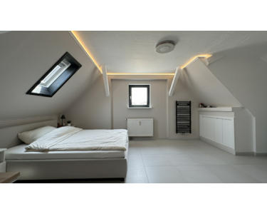 Die charmante Dachgeschosswohnung mit ca. 59 m² Wohnfläche wurde ebenfalls umfassend renoviert und ist seit 2024 zuverlässig für eine Kaltmiete von 700 € vermietet. Sie bietet 2,5 Zimmer, ein helles Wohnzimmer, ein gemütliches Schlafzimmer, eine Küche mit moderner Einbauküche sowie ein Tageslichtbad mit Dusche – ideal für Singles oder Paare.