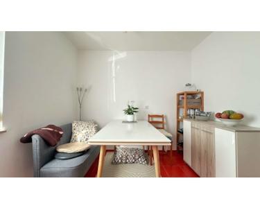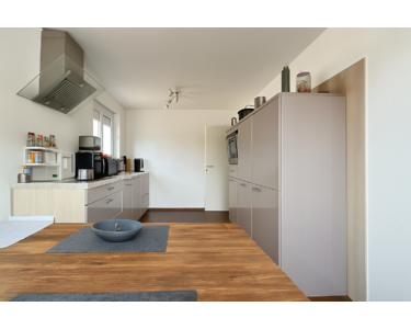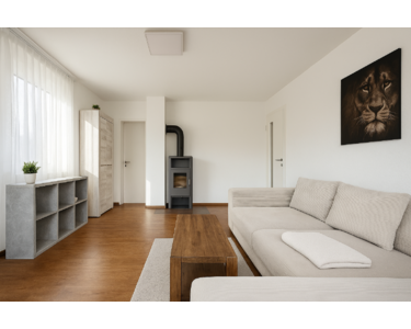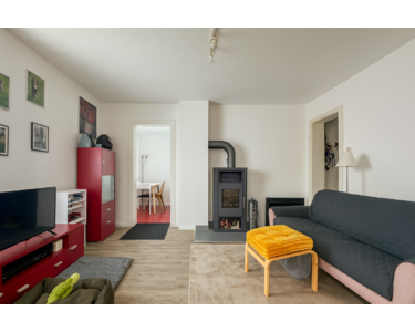 Die Obergeschosswohnung, ebenfalls rund 72 m² groß und 2014 umfassend saniert, zeigt sich modern und einladend. Ein großzügiges Wohnzimmer mit Balkon und Holzofen, eine helle Küche mit zeitgemäßer Einbauküche sowie ein stilvolles Tageslichtbad mit Dusche sorgen für hohen Wohnkomfort. Auch hier stehen ein separates WC, ein eigener Kellerraum und ein PKW-Stellplatz zur Verfügung.