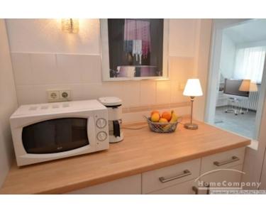 Diese exklusive Wohnung befindet sich in einer Bremer Villa in einer ruhigen Seitenstraße. Die Möblierung kombiniert moderne und auch antike Möbel und erzeugt damit einen ganz eigenden Charme. Die helle Einbauküche ist voll ausgestattet. Über den Flur erreicht man das Wohnzimmer. Der Hingucker ist die eingebaute Fensterfront. Vom Flur bekommt man somit, aus der Zuschauerperspektive einen Einblick in das Wohnzimmer. Hier dominieren klare Formen und das Farbspiel grau- weiß mit warmen Akzenten der Vintagemöbel im Arbeitsbereich. Das Badezimmer am Ende des Flures wurde modernisiert und ist nun mit großen Fliesen , einer Dusche und Glaswänden versehen. Das Schlafzimmer ist mit einem Doppelbett( 1,40 x 2,00m) ausgestattet. Sowohl vom Schlafzimmer, als auch vom Wohnzimmer kann man den Balkon betreten. Er ist nach süd-ost ausgerichtet und läßt viel Licht in die Räume. Der alte Baumbestand rund ums Haus läßt viel Ruhe zu. Die Wohnung ist perfekt für eine Person.
