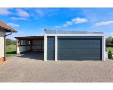 - elektrisches Einfahrtstor und Doppelgarage mit elektrischem Tor
