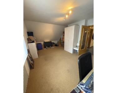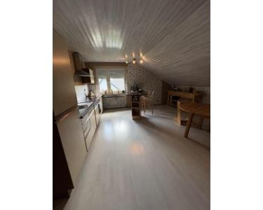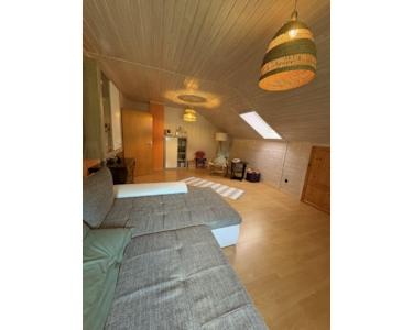 Im Dachgeschoss setzt sich die großzügige Raumgestaltung fort. Ein Flur verbindet alle Zimmer. Ein großer Wohnbereich unter der Dachschräge sorgt für Gemütlichkeit, die vorhandene Küche wirkt hell und einladend. Dazu kommen ein ruhiges Schlafzimmer, ein weiteres Zimmer für Kinder, Gäste oder Büro sowie ein modernisiertes Bad mit Dusche, Badewanne und Tageslicht. So eignet sich das Dachgeschoss ideal als separate Wohneinheit oder komfortable Rückzugsetage.