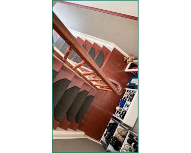 Im Vorraum des Treppenhauses sind noch die gut erhaltenen Original Bodenkacheln aus dem Jahr 1908 zu finden. Das Holz-Treppenhaus mit gedrechseltem Geländer wurde nicht verändert und ist ebenfalls im gepflegten Original-Zustand. Die leerstehende Wohnung im Erdgeschoss hat eine normale helle Ausstattung mit weiß-grau verfliesten Böden und weiß gestrichenen Raufasertapeten. Die Deckenhöhe beträgt hier...