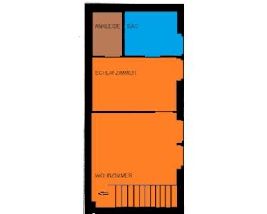 DG: Wohnzimmer, Schlafzimmer mit Ankleide, Bad mit Badewanne, WC