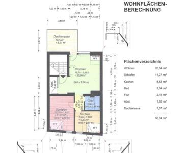 Die Wohnung bietet ca. 50 m² Wohnfläche und überzeugt mit einem guten, praktischen Grundriss. Sie umfasst ein helles Wohnzimmer, ein Schlafzimmer, eine separate Küche, ein modernisiertes Badezimmer mit Gas-Etagenheizung sowie eine praktische Abstellkammer mit Zugang zum Dachspeicher. Ein Highlight ist die großzügige Dachterrasse, die zum Entspannen einlädt. Ein eigenes Kellerabteil sowie ein Gemeinschaftswaschraum mit Waschmaschinenanschluss im Untergeschoss gehören ebenfalls zur Wohnung.