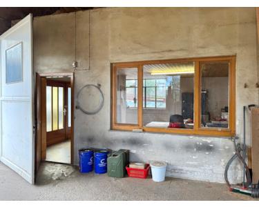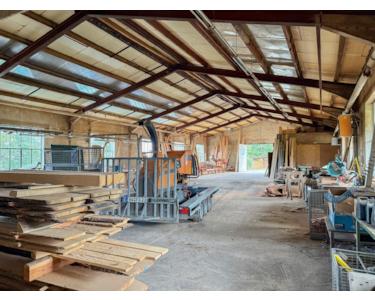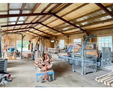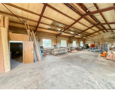 Diese massiv errichtete Gewerbehalle verfügt über eine überdachte Holzlagerfläche von 48 m², ein Schwingtor mit 3 m Höhe und eine Hallenhöhe von 6 m, wodurch auch das Befahren mit größeren Fahrzeugen möglich ist. Zusätzlich steht ein Lagerplatz von ca. 1.000 m² zur Verfügung.