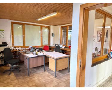 Im Erdgeschoss befindet sich ein separates Büro, ideal geeignet, um Kunden zu empfangen. Das Kellergeschoss ist mit einem Aufenthaltsraum für Mitarbeiter, einem Wasch - und Umkleideraum, sowie sanitären Anlagen ausgestattet. Pkw-Stellplätze stehen direkt vor dem Objekt bereit.