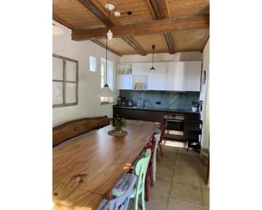 Massivholzboden, Naturstein, Fliesen, Antikholzmöbel, neue Küche mit Naturstein sowie Fußbodenheizung in der Scheune