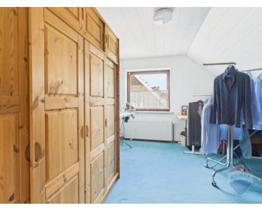 Über die massive Treppe gelangt man ins Obergeschoss, das mit einem ca. 32 m² großen Zimmer sowie drei weiteren, gleich großen Räumen viel Platz für Familie, Gäste oder Homeoffice bietet. Das helle Badezimmer mit Dusche, Badewanne und WC sorgt für Komfort.